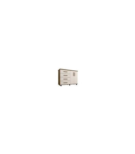 Cômoda 4 Gavetas 2 Portas Encanto Amêndoa E Off White - Geval